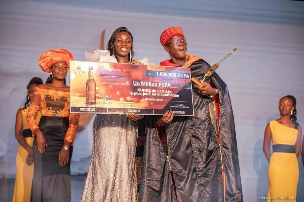 Pour cette 21è édition, le Kundé de l’artiste le plus joué en discothèque, récompensé par Castel Beer est revenu à Floby. Il a reçu son trophée des mains de Nadège TRAORE/BASSOLE, Chef de service GMAO de BRAKINA représentant le Directeur Général de l’entreprise éponyme. En plus du trophée, Floby reçoit 01 millions de FCFA de Castel Beer.