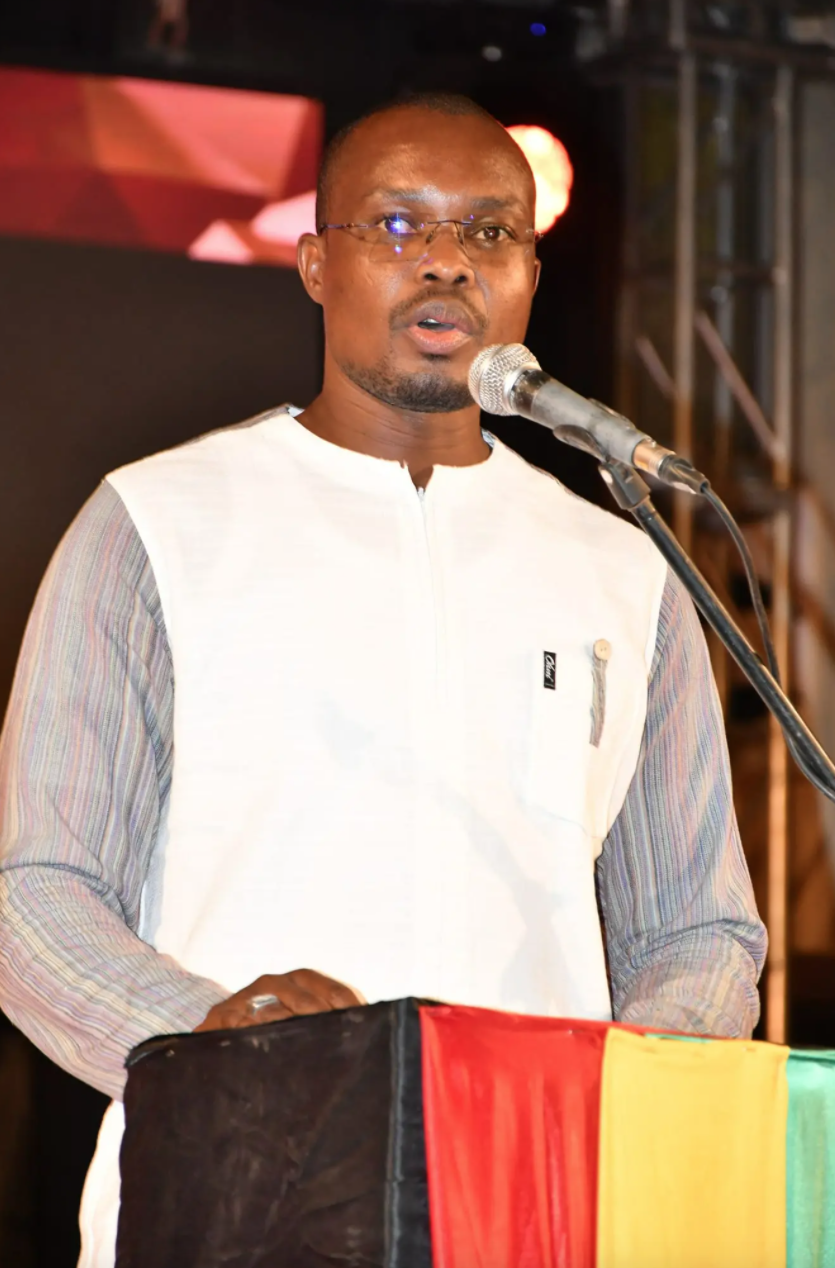 Sacré Marley du Public et Marley d’Or 2023, Folio le Nuage reçoit son trophée des mains de M. Fidele Aimé OUEDRAOGO, Chef de Division des Ventes Régionales Ouaga de SODIBO, représentant le Directeur Général de BRAKINA.