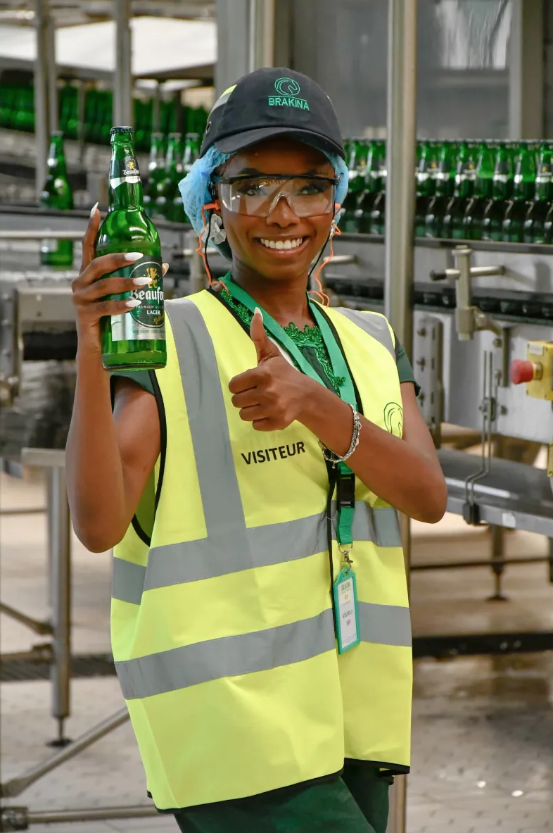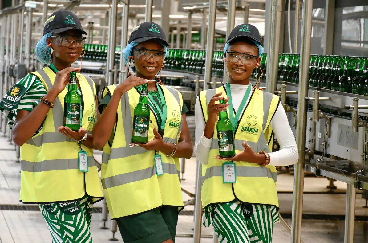 Miss Universités 2025 et ses dauphines plongent au cœur de la production de Beaufort Lager à BRAKINA !